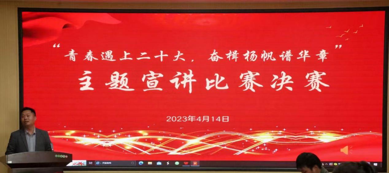 为全面学习领会党的二十大精神,牢牢把握其思想精髓和核心要义,进一步推动学习宣传贯彻党的二十大精神走深走实,pg电子官方网站于2023年4月14日下午在人文楼3-7会议室举办了“青春遇上二十大,奋楫扬帆谱华章”主题宣讲比赛决赛。pg电子官方网站党委副书记王家宏、专职组织员郭子悦和专职辅导员陈辉担任比赛评委。