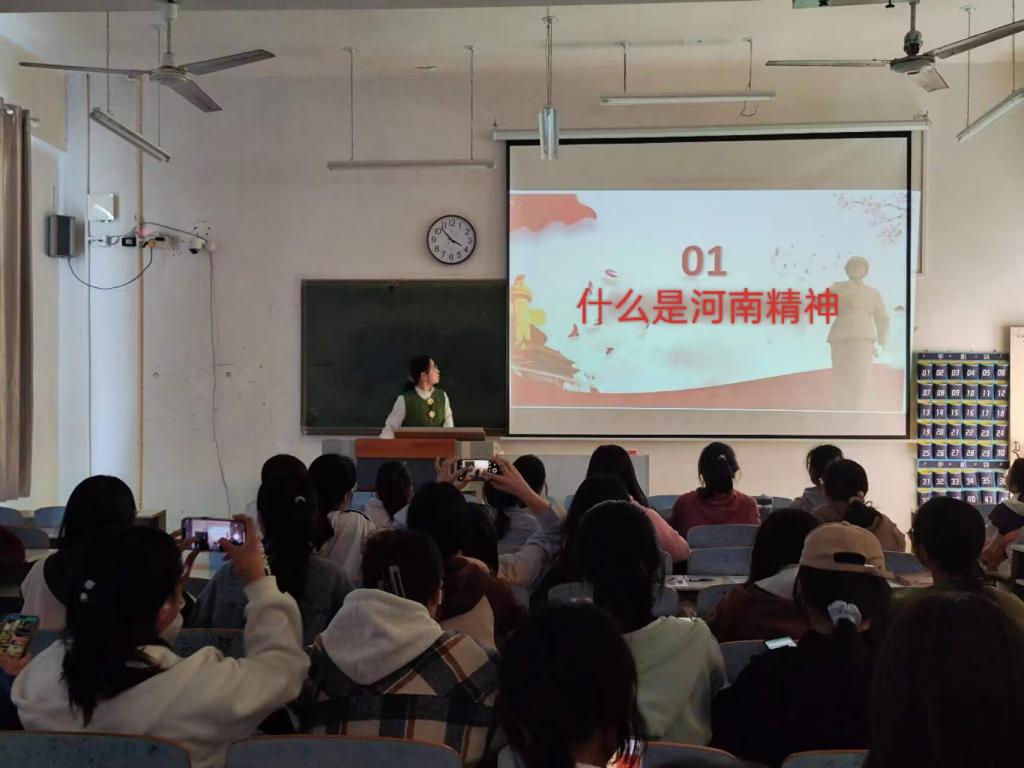 为了激励广大青年传承和弘扬河南精神,2022级各班于5月16日下午三点在人文楼组织开展了“传承河南精神”主题团课活动。pg电子官方网站22级全体学生共同参与了本次活动。