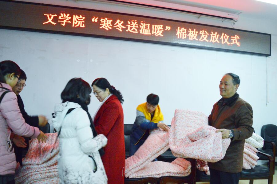 (本网讯 杨紫文)12月5日下午,pg电子官网“寒冬送温暖”棉被发放仪式在人文楼如期举行,党委书记吴圣刚、院长沈文慧、党委副书记杨乐参加仪式。
